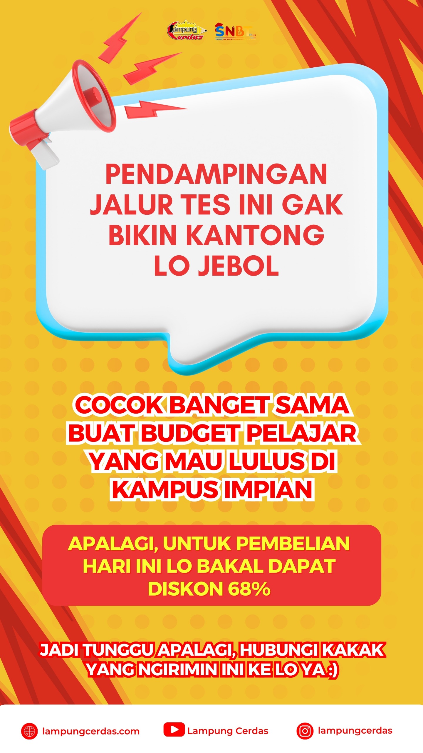 Segera konsultasikan kampus impianmu dan persiapanmu ke tim Lampung Cerdas! 👉 Klik link berikut untuk dapatkan solusinya: lampungcerdas.com/snbtplus